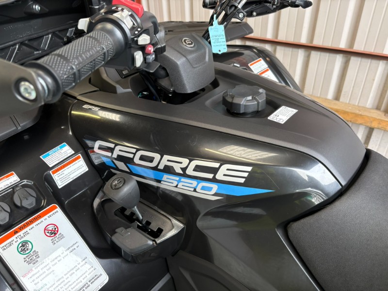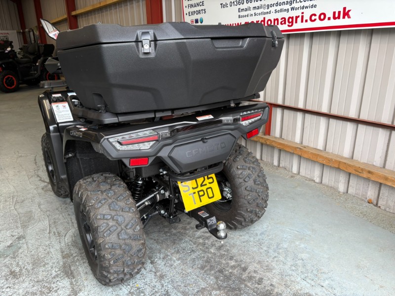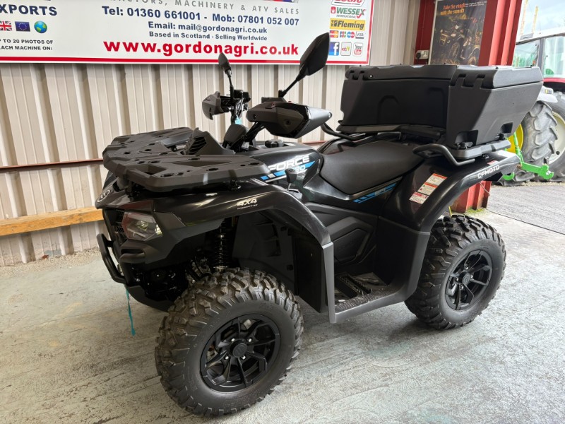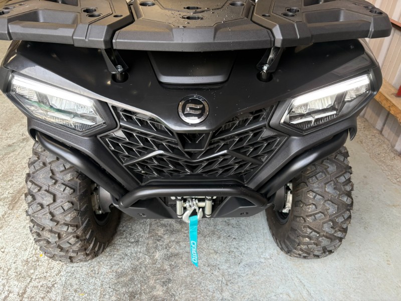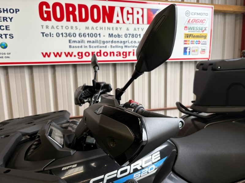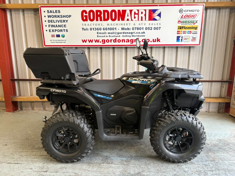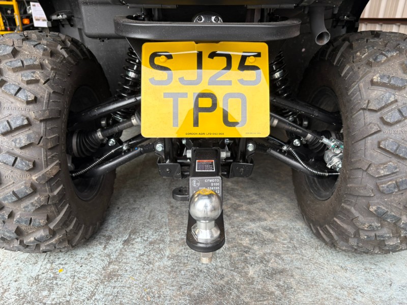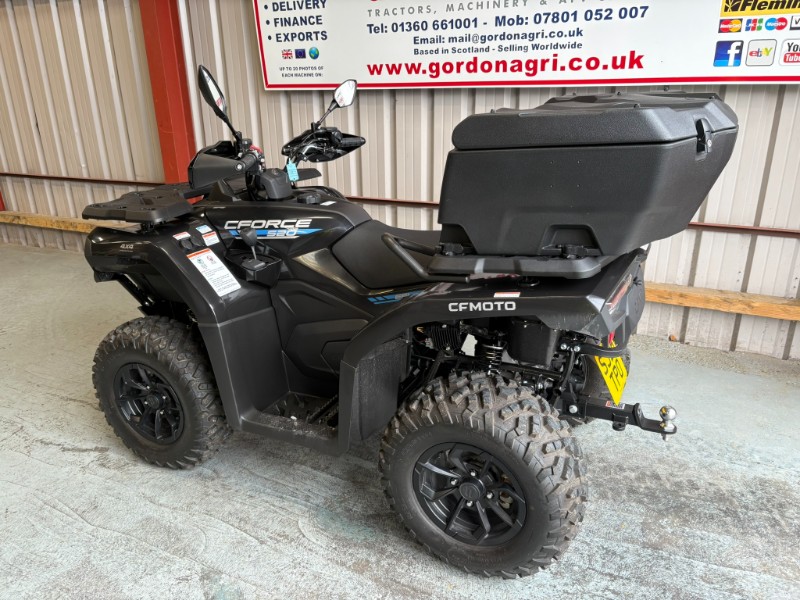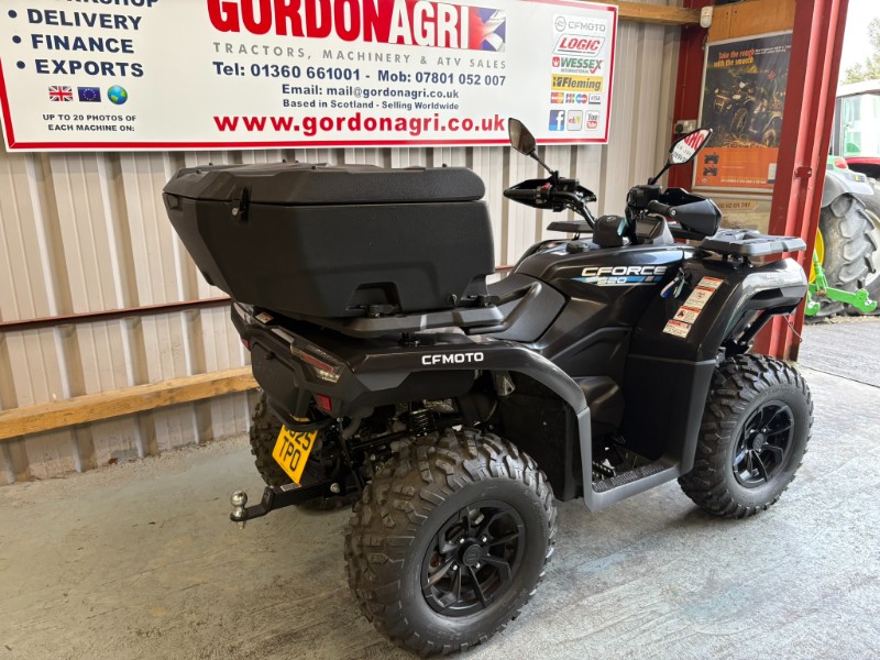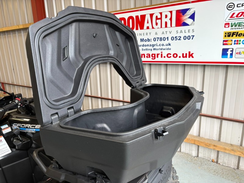CFMOTO CFORCE 520 EPS, 2025, PLG registered on 09/04/2025, reg: SJ25 TPO, Black, Ex display/demo quad, only 14.7 hours / 257 miles from new, never been on a farm, in as new condition and fitted with CFMOTO Rear lockable trunk box. Spec includes 495CC liquid cooled engine, electronic power steering, factory fitted winch, switchable 4wd/2wd with diff lock, automatic CVTech transmission, high /low & reverse, independent suspension, disc braking all round, heavy duty front and rear racks, rear tow ball, large towing capacity, multi-function digital dash, high intensity headlights and integrated rear lights with front & rear indicators, fitted with wing mirrors and enclosed footwells. Cost new is £5999 for quad, £239 for rear box and £239 for PLG registration so total of £6477 plus vat. This gives a total saving of £728, which is a great saving on new price.