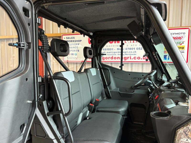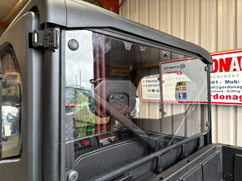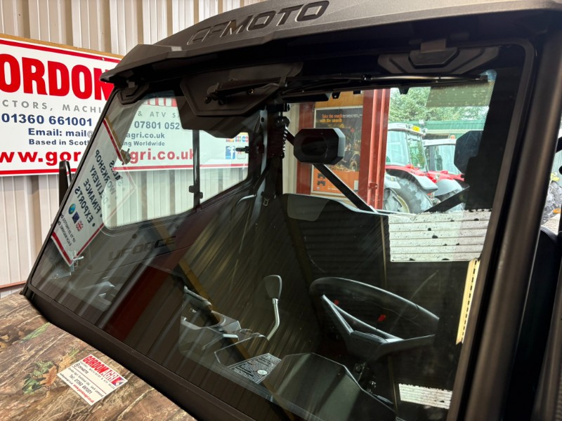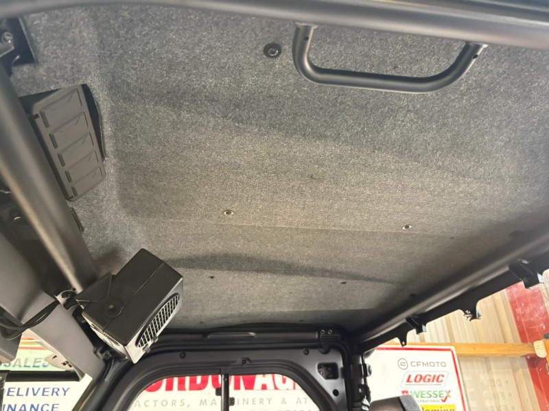 We have fitted the CFMOTO Premium Cab kit to this unit which comprises front opening screen, window/wash wipe kit, rear screen, solid roof with roof liner, 2 full length doors with opening windows, wing mirrors and an in cab 300w ceramic heater/fan unit.