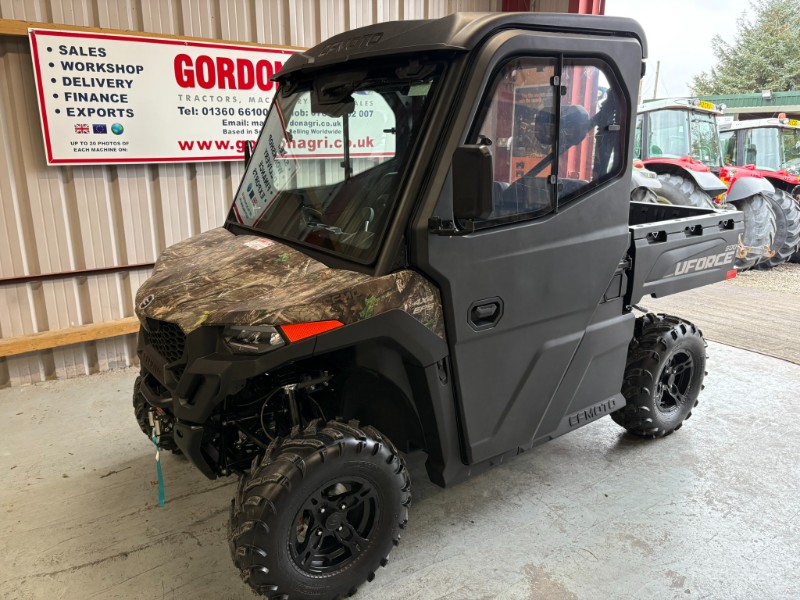 CFMOTO UFORCE 600 Utility Vehicle, Brand new 2026 Kanati Camo edition. Homologated for road use (PLG or Agri) comes with factory fitted road lighting / indicator kit, 2 year warranty, 0% Finance available (business users only - 80% of RRP on a 2 plus 22 instalments scheme), Spec includes 580CC liquid cooled engine, electronic power steering, factory fitted winch. switchable 4wd/2wd with diff lock, automatic CVTech transmission, Hi and low range, independent suspension, disc braking all round, rear tow ball, large towing capacity, multi-function digital dash, seatbelts, gas assisted rear tipping body, high intensity headlights, two drive modes “work” or “normal”. Comes fitted with ROPS system.