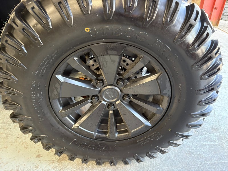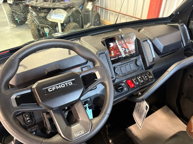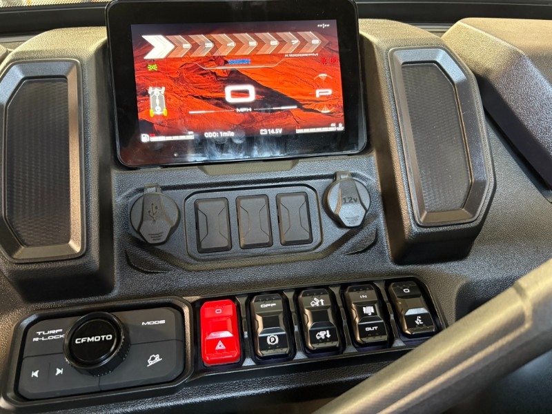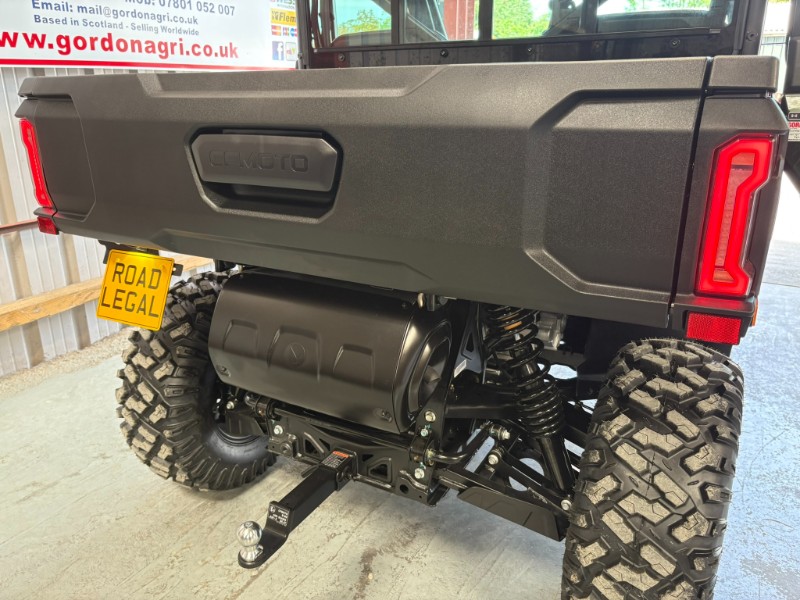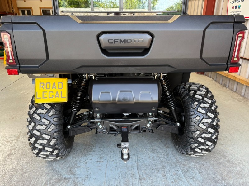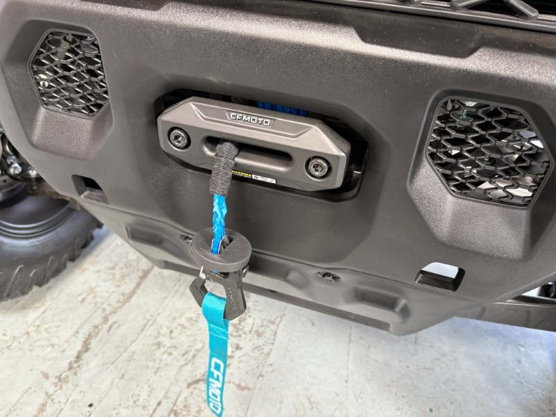 Spec includes 90HP 998cc 3cylinder liquid cooled petrol engine, ABS, electronic power steering, automatic CVT transmission, push button gear shift with hi/low range, switchable 4wd/2wd with diff lock, factory fitted 2000kg winch, independent suspension, disc braking all round, rear tow ball, 750kg Capacity Electronic/ Hydraulic Tilting Cargo Box, 1334 kgs towing capacity, 8″ CFMOTO RideSync™ MMI touchscreen display, Ride Modes (Work/Normal), hill descent control, 14″ Aluminium Alloy Wheels with 29″ Tires, LED Headlights/Taillights/Backup Lights, 12V and USB sockets and automotive style push button start/stop.