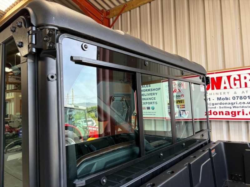 The full cab comes as standard and includes a power opening front screen with wiper and washer, fully interior finished doors with power windows, lockable doors, wing mirrors and a sliding glass rear screen along with hard roof.