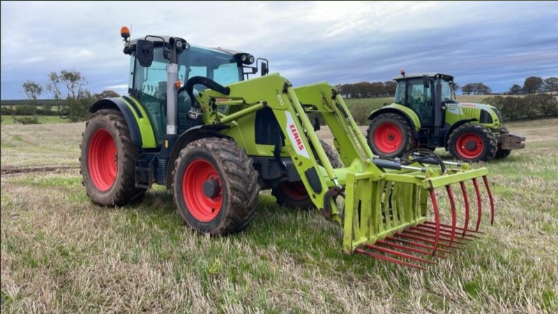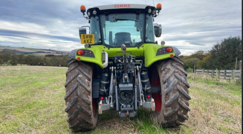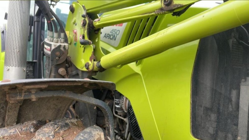 Claas Arion 450 4WD Tractor, 2018, Reg: SV18 AXZ, c/w Claas FL100 and muck grab, joystick control, 3rd service, 130HP, 5900 recorded hours, power shuttle, 40K, air brakes, push out PUH, 2 spools, trailer braking valve, top link, quick release rear link arms. Premium cab, air con, air seat, work lamps, passenger seat. 2 owners from new. Straight from farm and in genuine condition. All prices are plus VAT. New in stock awaiting full preparation.