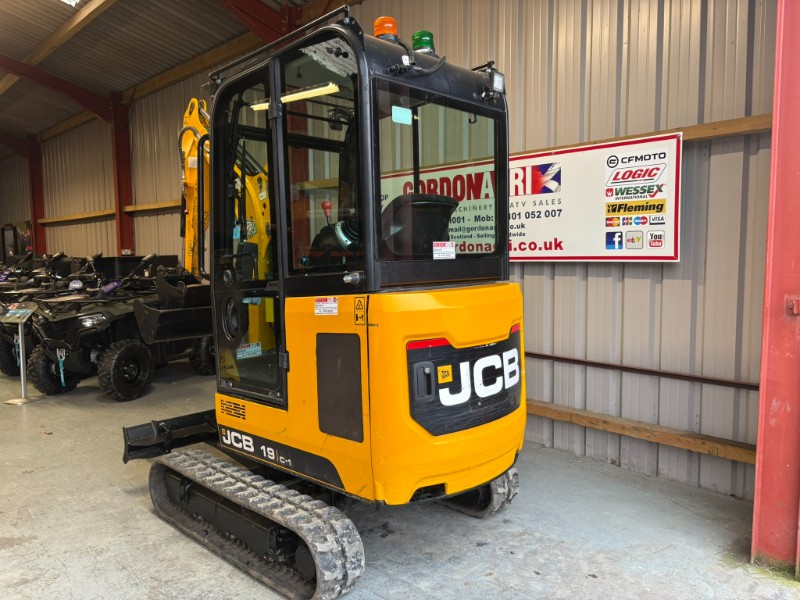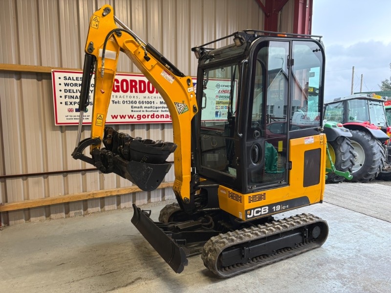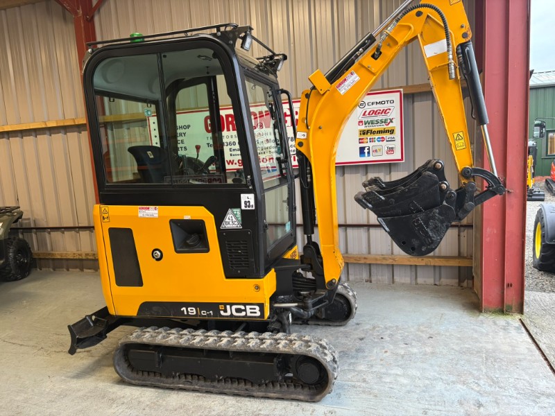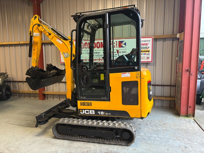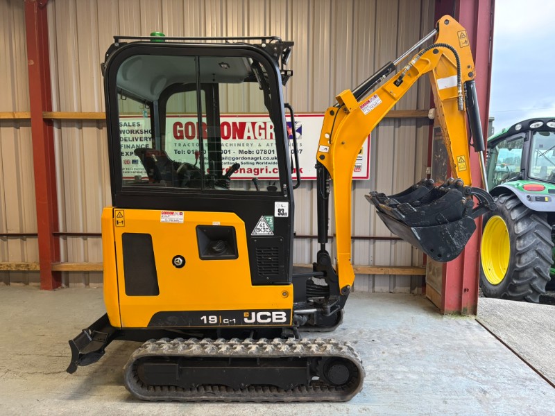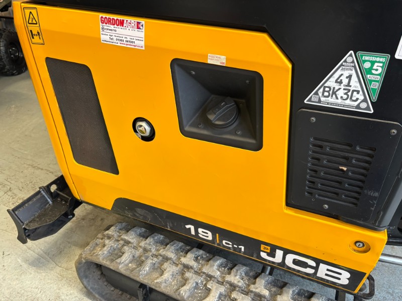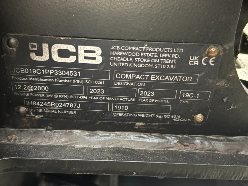 JCB 19C-1 Mini Excavator, 2023, 1.9 Ton, c/w 3 buckets (full set), only 551 recorded hours, quick hitch, expanding tracks, 2 speed tracking, rubber tracks 80%, dozer blade with side extensions, slew, piped for breaker, beacons, work lamps, window wiper, cab heater and immobiliser. Good spec machine ready to go to work. All prices are plus VAT.