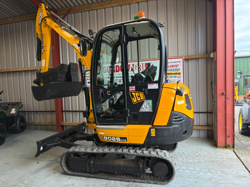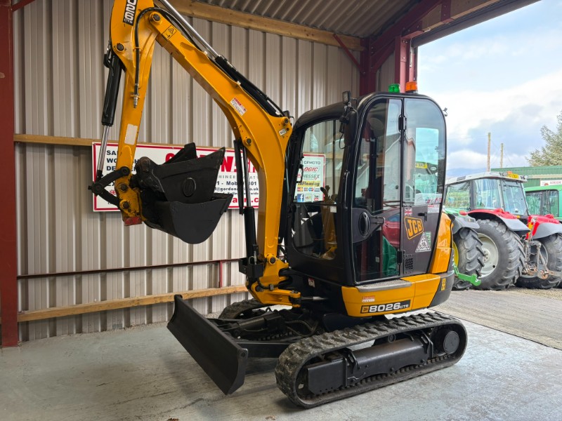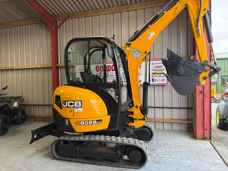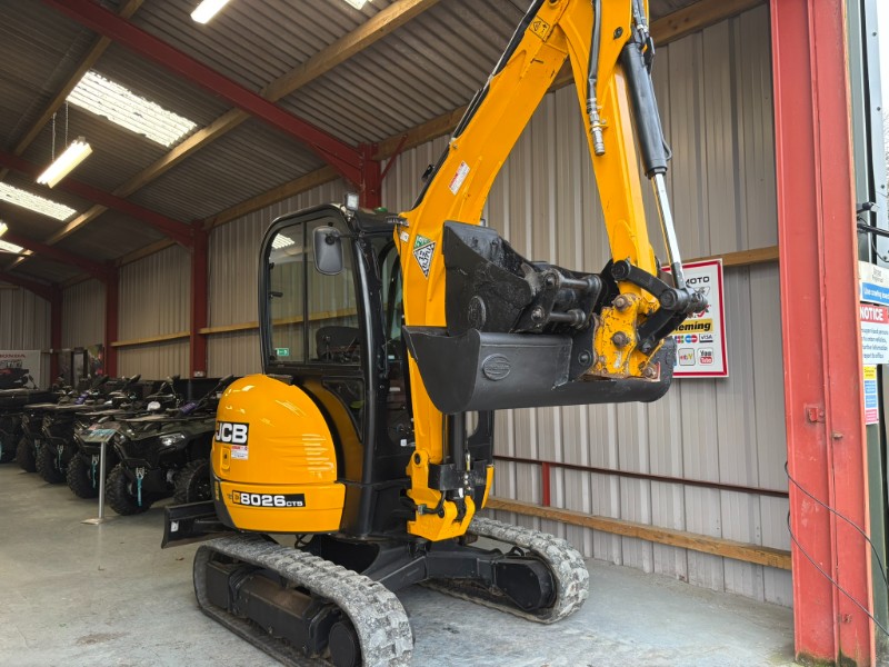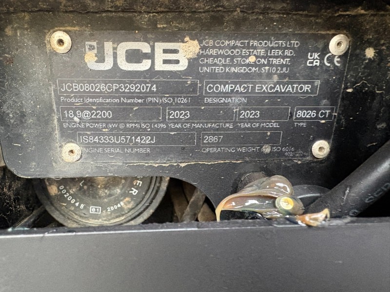 JCB 8026 Mini Excavator, 2023, 2.8 Ton, c/w 3 buckets (full set), only 589 recorded hours, quick hitch, expanding tracks, 2 speed tracking, rubber tracks 60%, dozer blade, slew, piped for breaker, work lamps, beacons, window wiper, cab heater and immobiliser. Good spec machine ready to go to work. All prices are plus VAT.