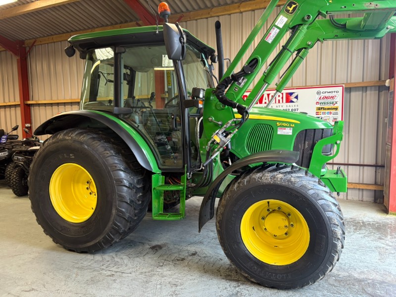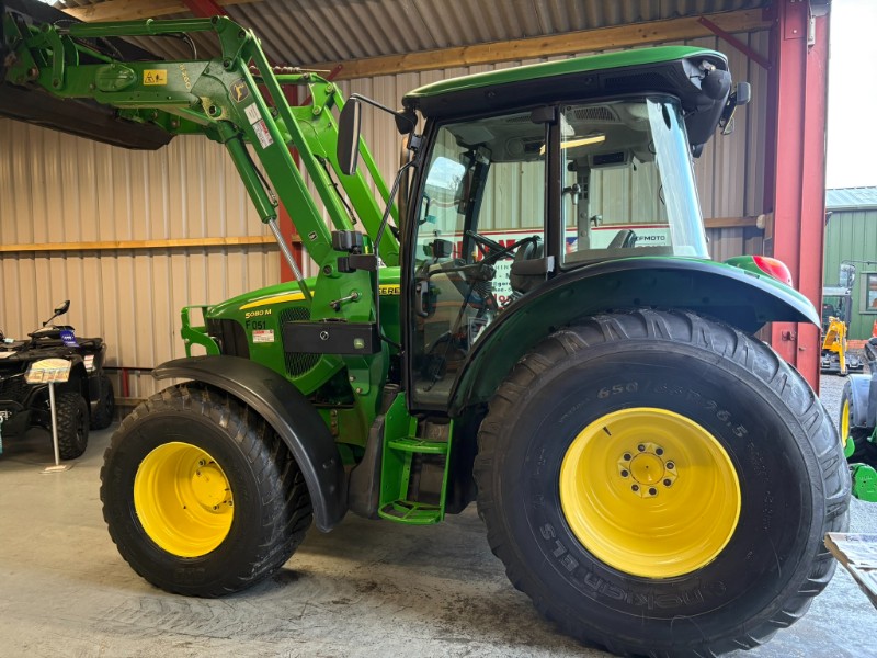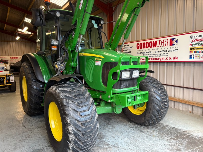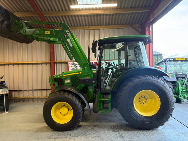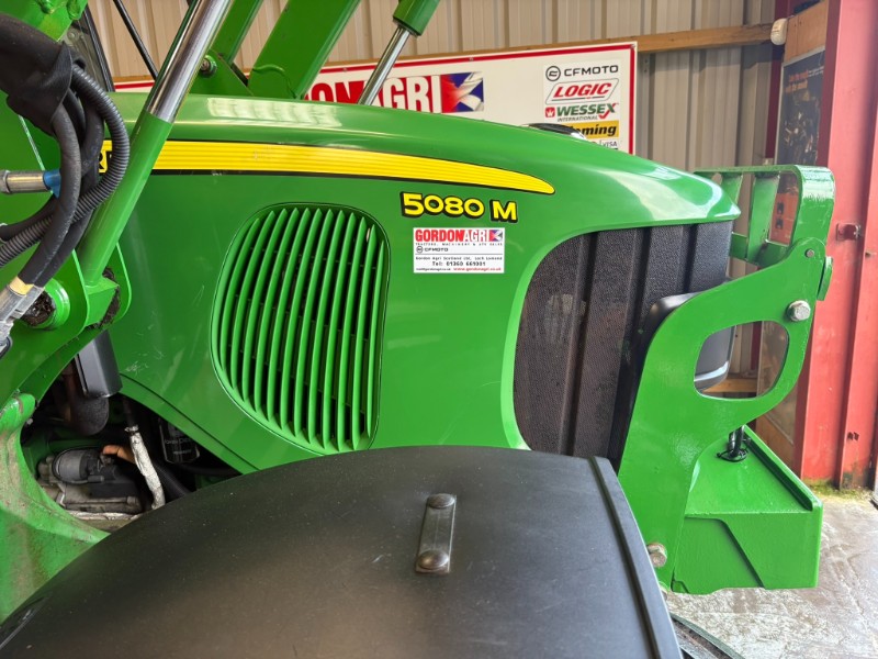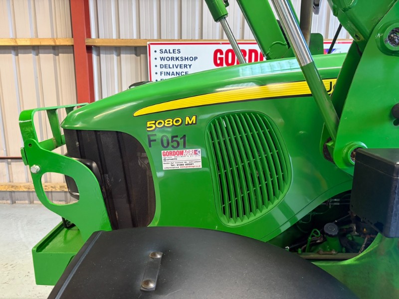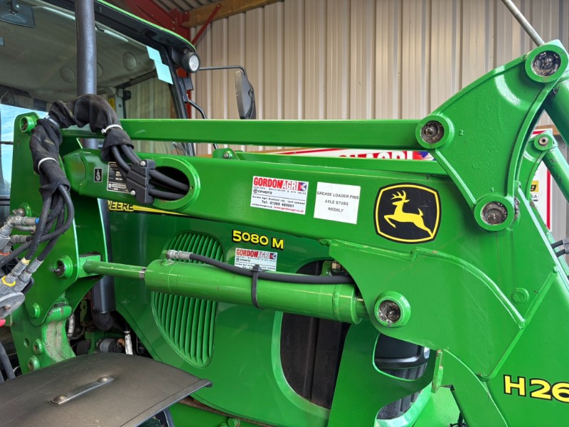 John Deere 5080M 4WD Tractor, 2013, Reg: SP13 BZL, c/w John Deere H260 Loader & 7ft open/close Bucket, joystick control, 3rd service, 80HP, only 3337 recorded hours, 16 forward/reverse with left hand shuttle, PUH, drawbar, 2 spools, trailer braking valve, top link, quick release rear link arms, front fenders. Tyre sizes and percentages 500/60 -22.5 80% and 650/65 – 26.5 60%. Air con, air seat, passenger seat, work lamps, beacon. Ex local authority tractor with very low hours. V5 document, 1 owner from new. All prices are plus VAT.