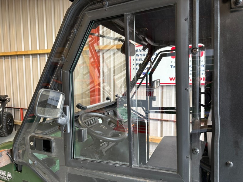 Fitted with full cab. Front glass tilt out screen, front wiper, rear screen with opening section, hard roof with internal sound padding, full length door with side opening section, lockable doors, wing mirrors, in cab heater, bench seat with seat belts. Full road lighting kit with indicators etc.