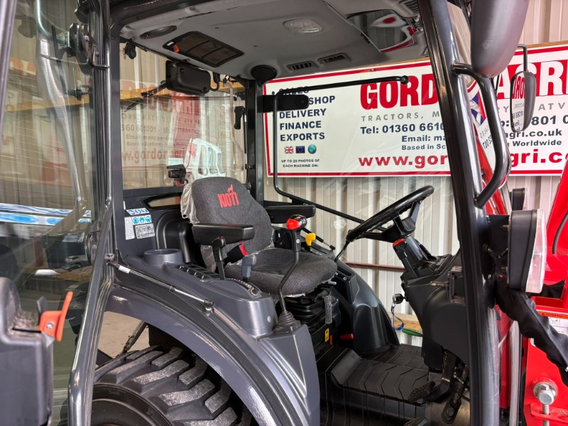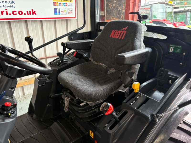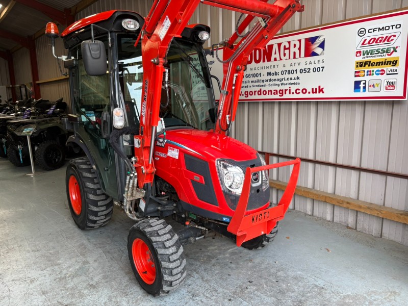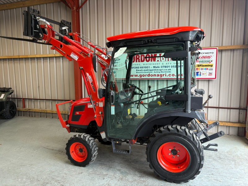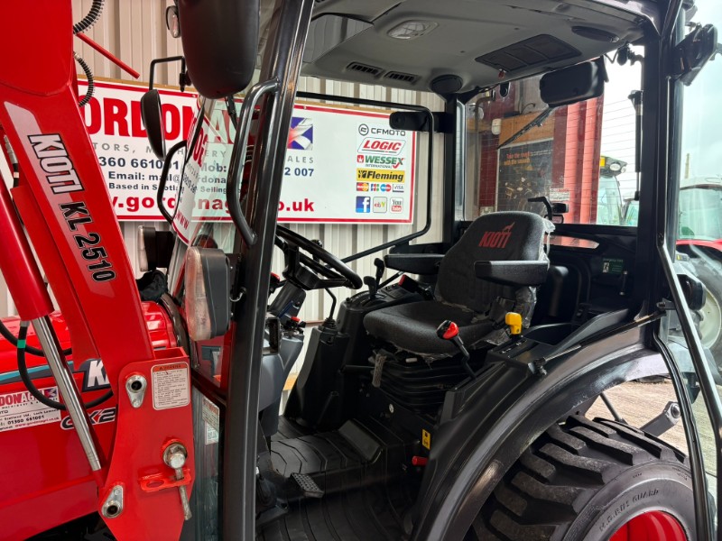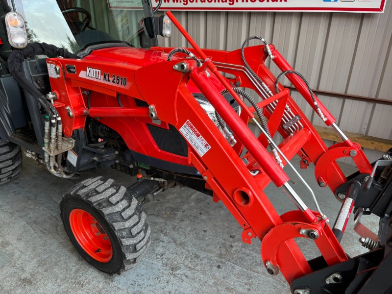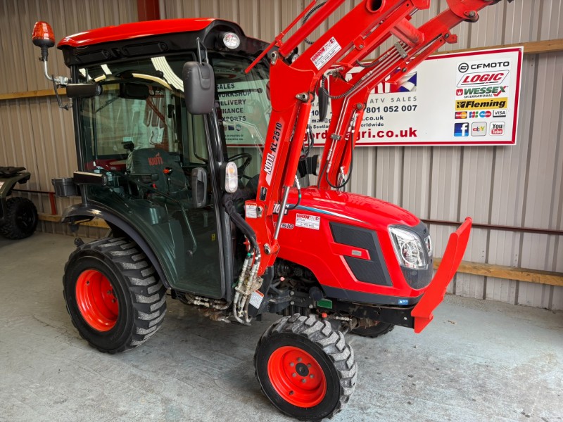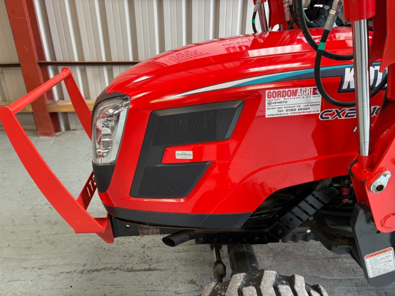 Kioti CX 2510 Compact 4WD Tractor, 2022, Reg: SV71 AWZ, c/w Kioti KL2510 loader fitted with bucket and pallet forks, joystick control, 25HP Kioti diesel engine, only 367 recorded hours, hydrostatic transmission, power steering, 3 point linkage, top link, drawbar, rear spools. Tyre sizes & percentages 23x8.5-12 80% and 12-16.5 80%. Heater and air con, work lamps and beacon. V5 Document. Ex caravan park and is a clean example all-round. Cost new is around £22k plus vat so good saving. All prices are plus VAT.