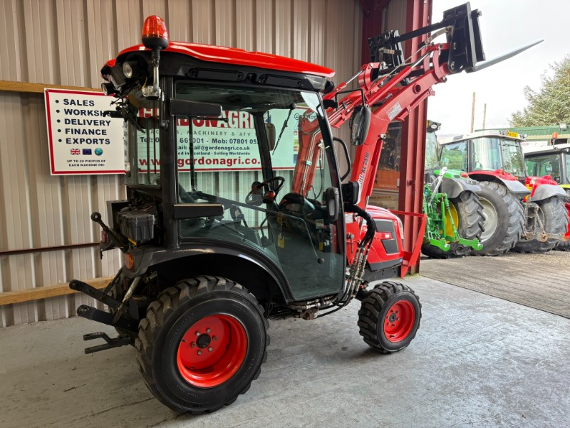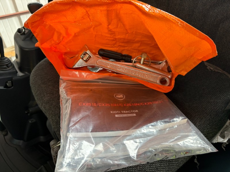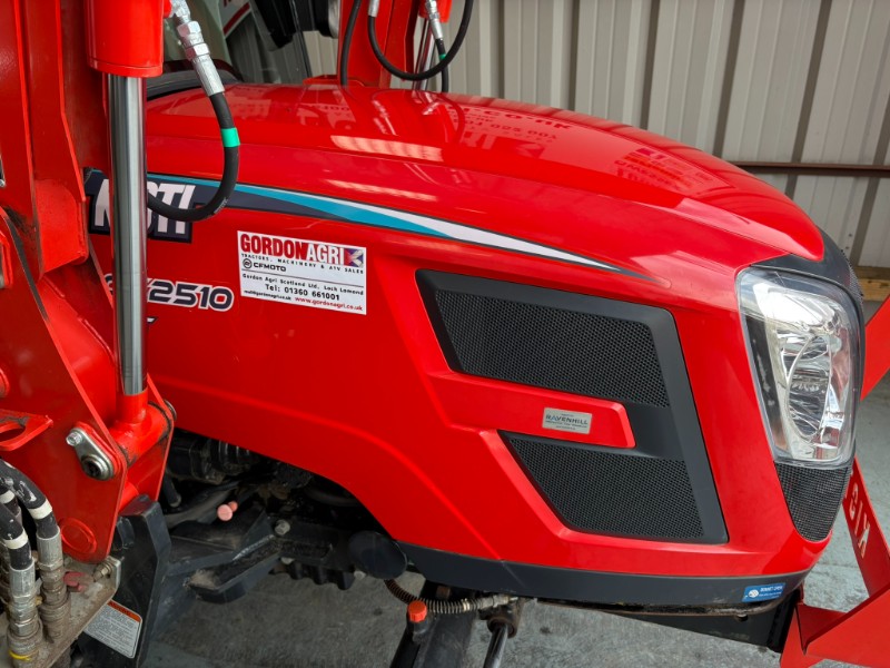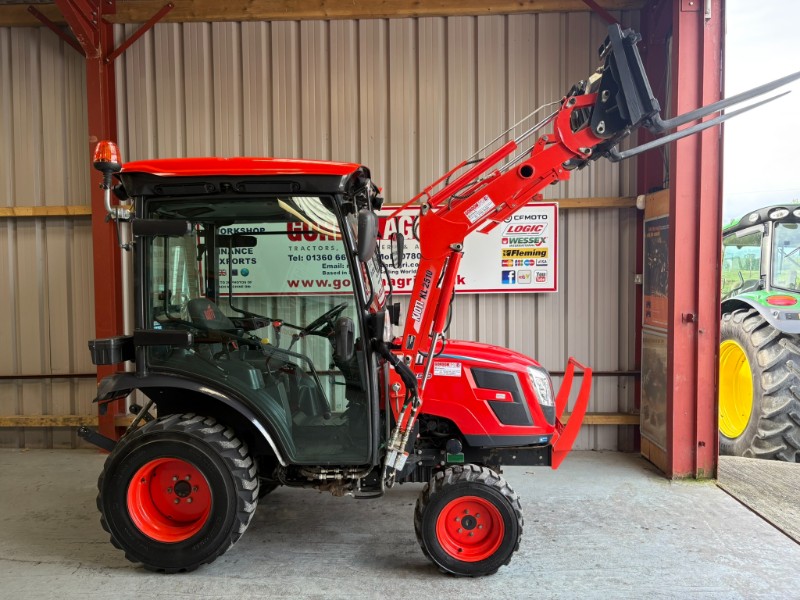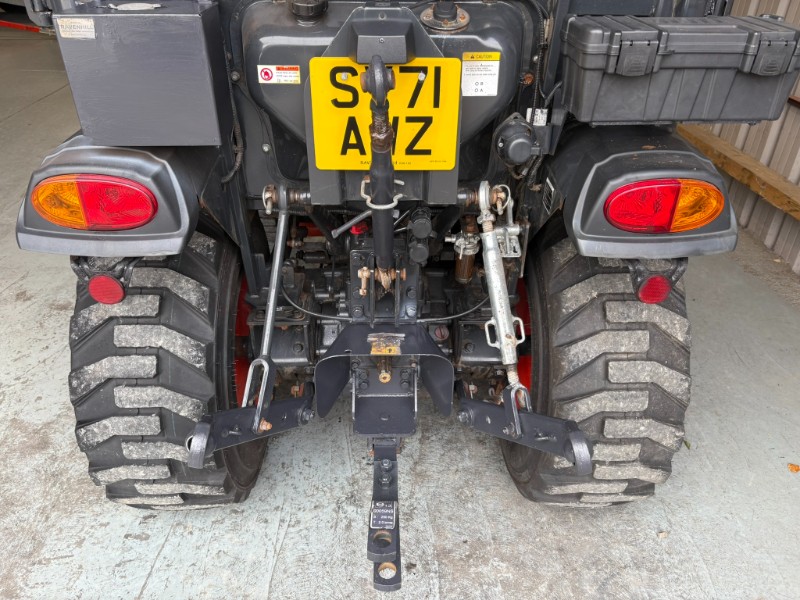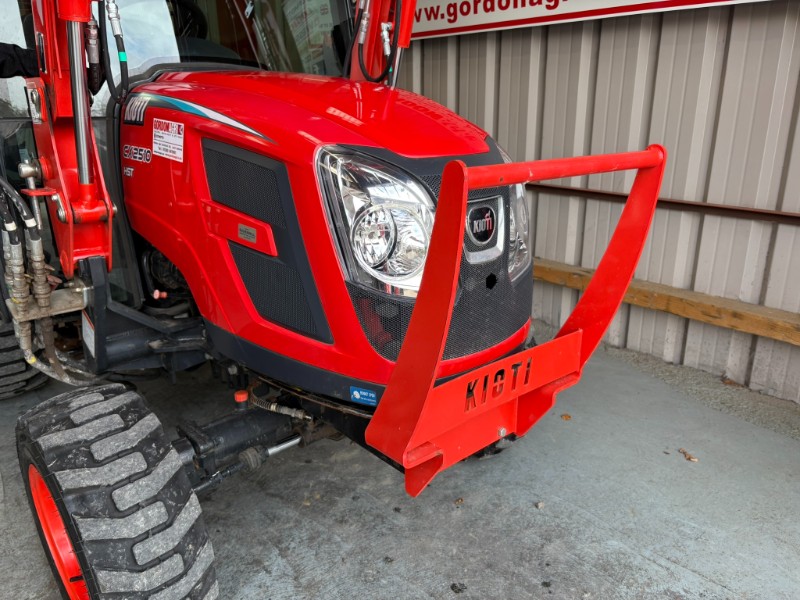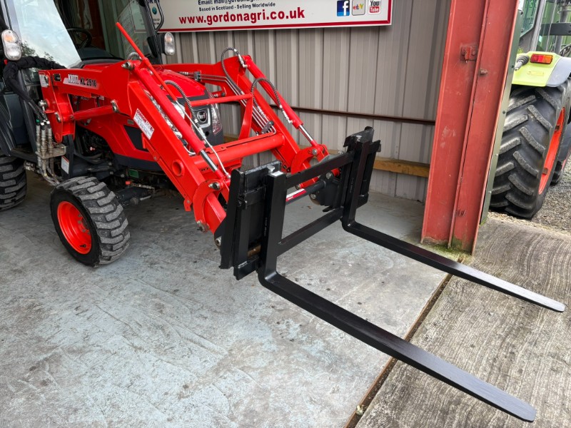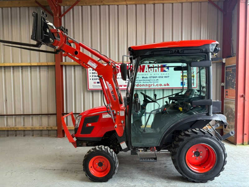 Kioti CX 2510 Compact 4WD Tractor, 2022, Reg: SV71 AWZ, c/w Kioti KL2510 loader fitted with bucket and pallet forks, joystick control, 25HP Kioti diesel engine, only 367 recorded hours, hydrostatic transmission, power steering, 3 point linkage, top link, drawbar, rear spools. Tyre sizes & percentages 23x8.5-12 80% and 12-16.5 80%. Heater and air con, work lamps and beacon. V5 Document. Ex caravan park and is a clean example all-round. Cost new is around £22k plus vat so good saving. All prices are plus VAT.