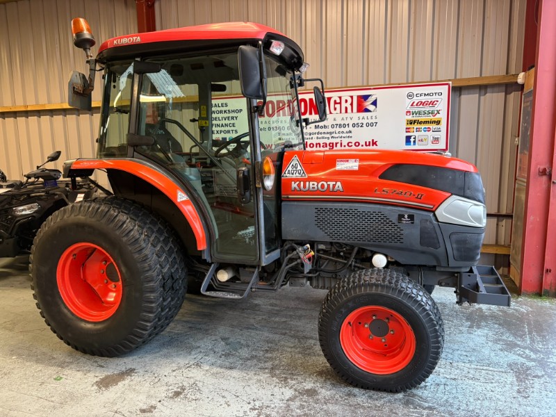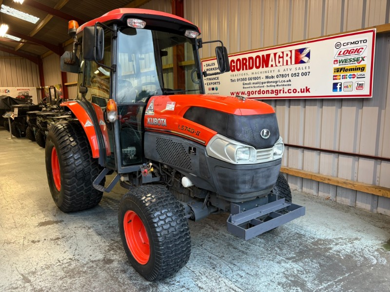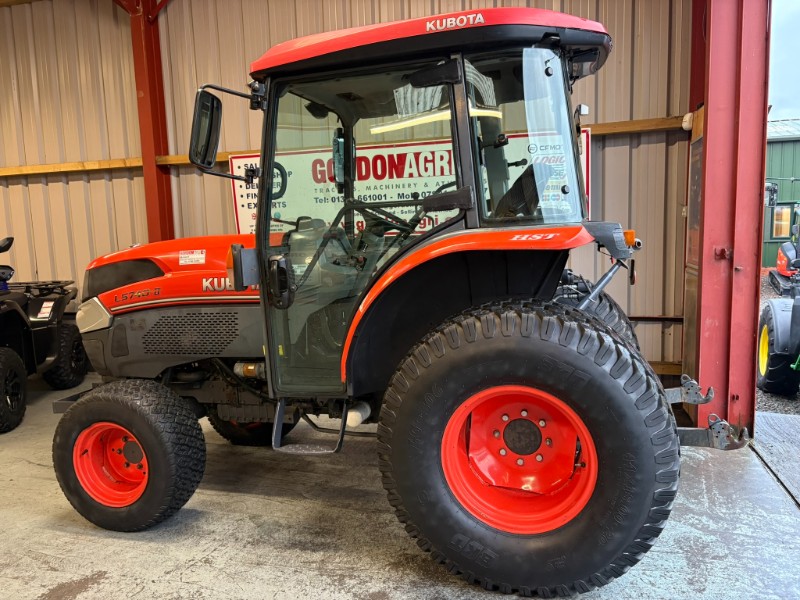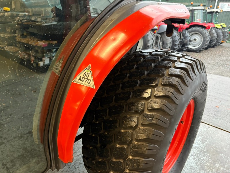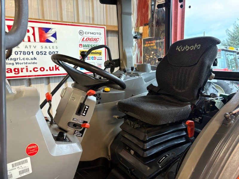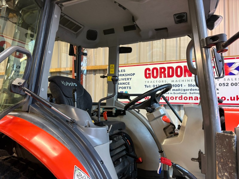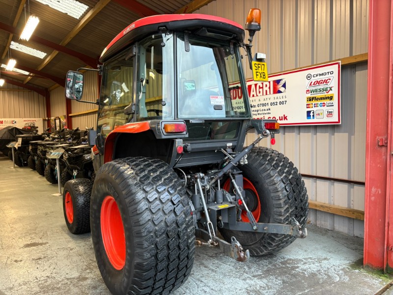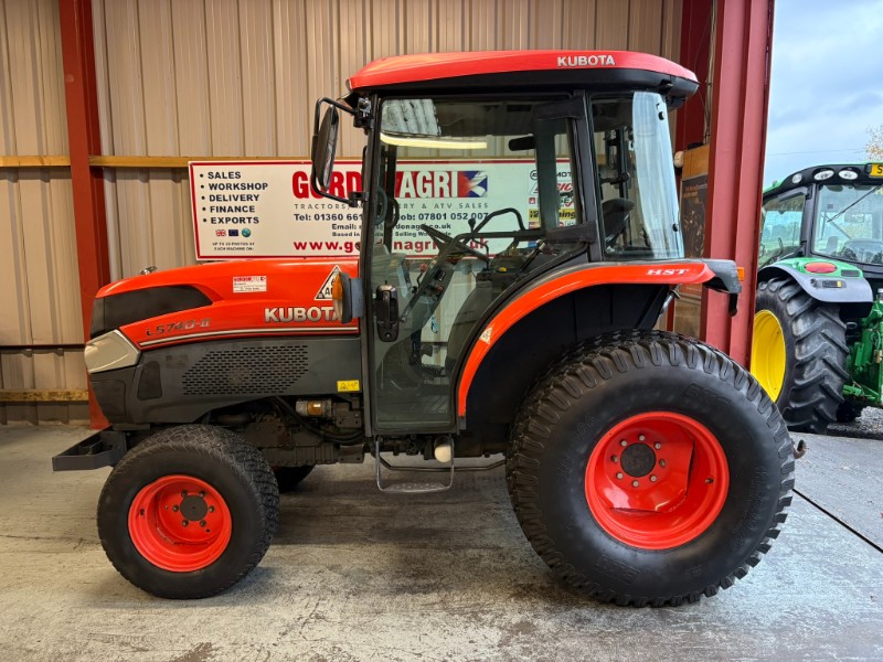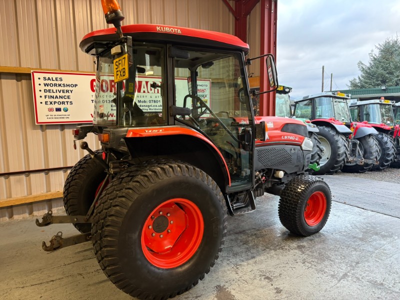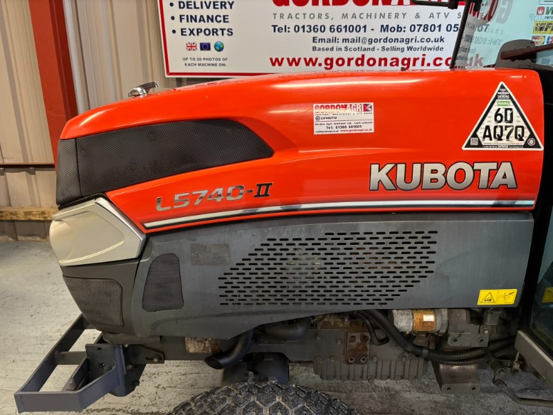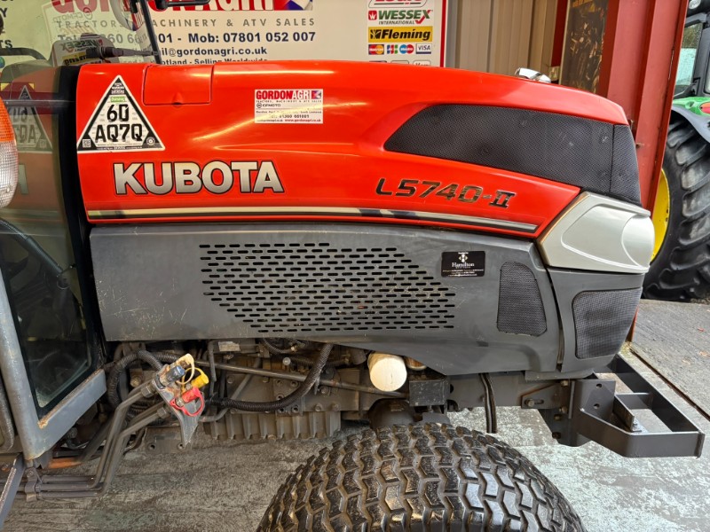 Kubota L5740 4WD Tractor, 2017, Reg: SF17 FXB, 4 cylinder 59HP, only 2448 recorded hours, HST transmission with stall guard & response control, front mounted spools, 2 rear spools, top link, power steering, rear PTO, 3 point linkage (no drawbar). Tyre sizes and percentages 44x18-20 80% and 29x12-15 40%. Full cab, air con, heater, work lamps and beacon. Ex local authority tractor in clean condition. All prices are plus VAT.