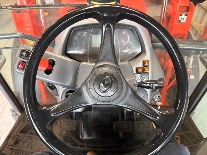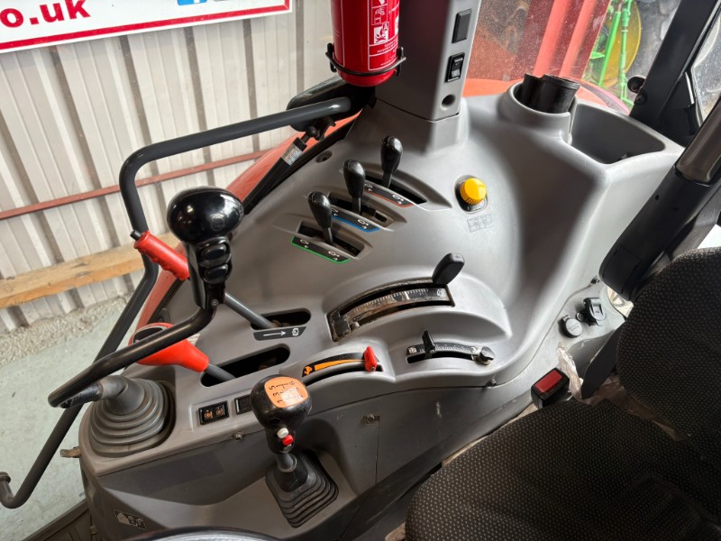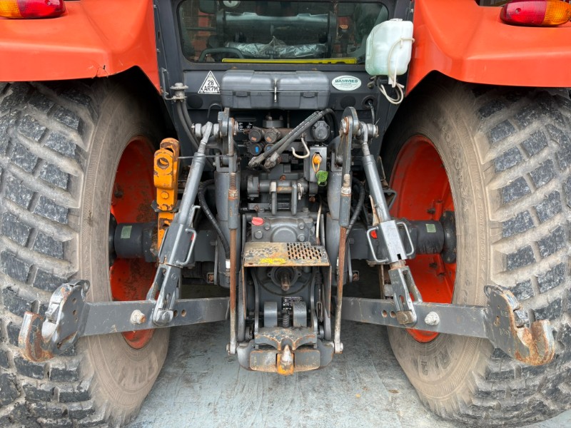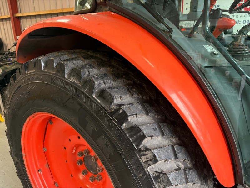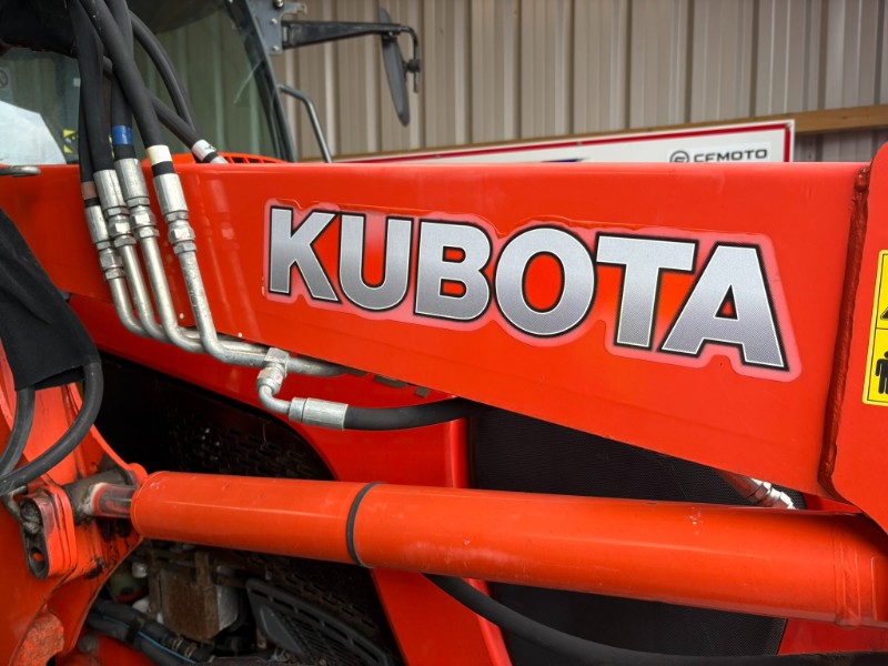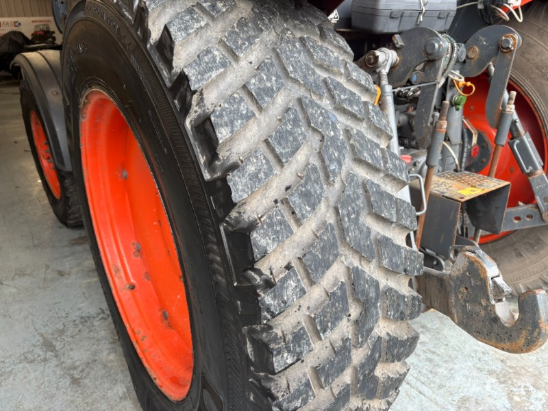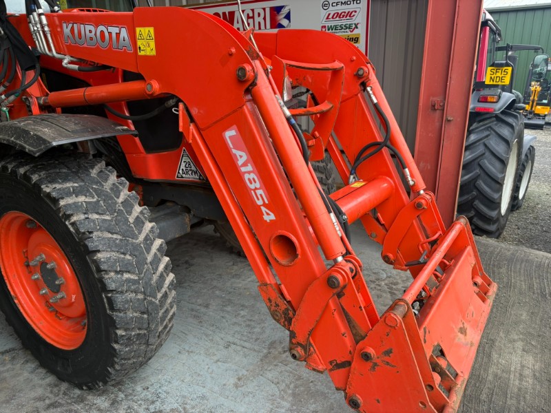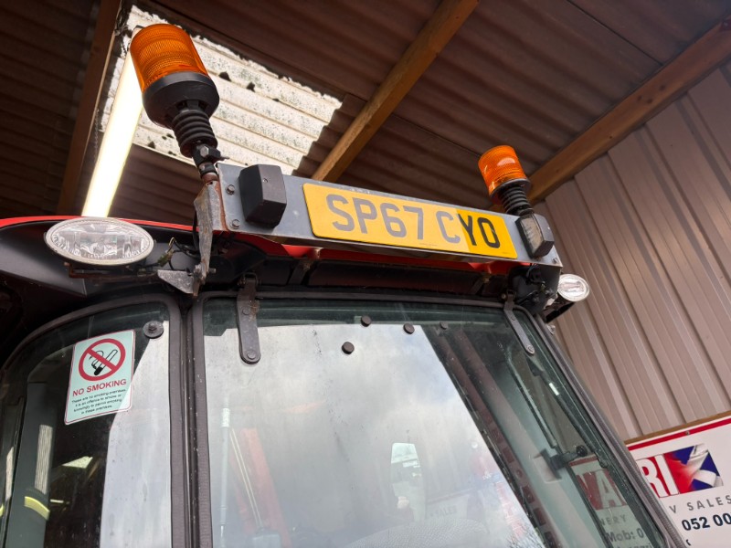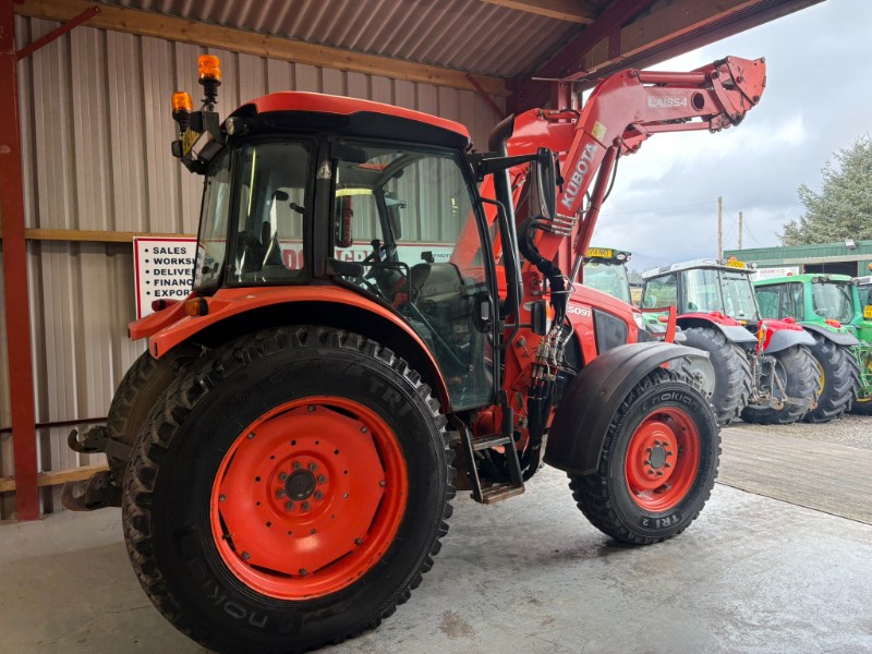 Kubota M5091 4WD Tractor, 2017, Reg: SP67 CYO, c/w Kubota LA1854 Loader, 3rd service, joystick control, 75HP, 4738 recorded hours, hydraulic shuttle, declutcher, 36 forward/reverse with max speed 40K, push out PUH, 2 spools, trailer braking valve, quick release rear link arms, front fenders. Tyre sizes and percentages 440/80x34 50% and 340/80x24 30%. Air con, air seat, passenger seat, work lamps and beacons. Ex local authority tractor in clean condition. All prices are plus VAT.
