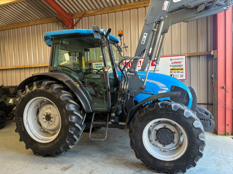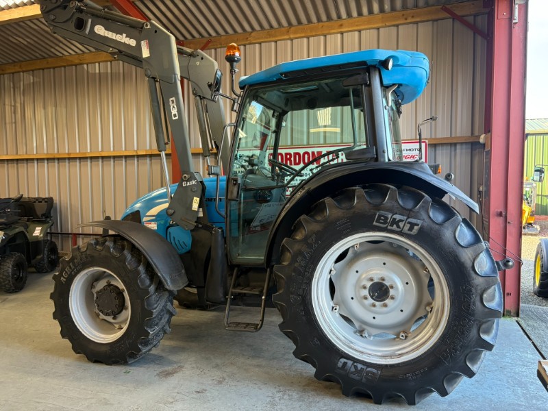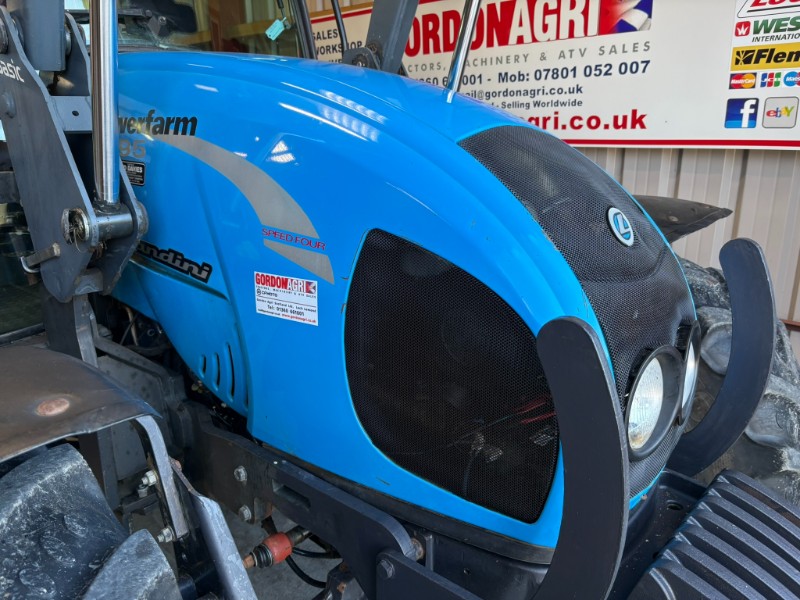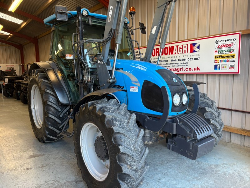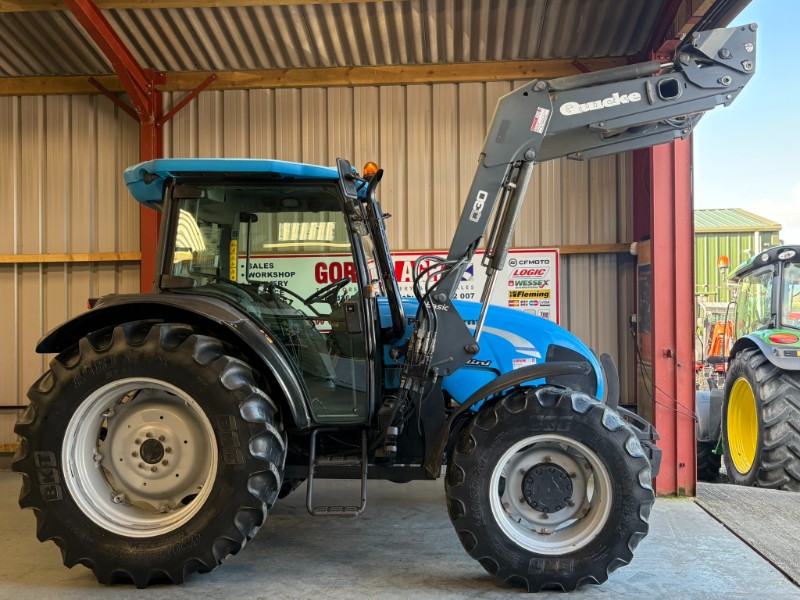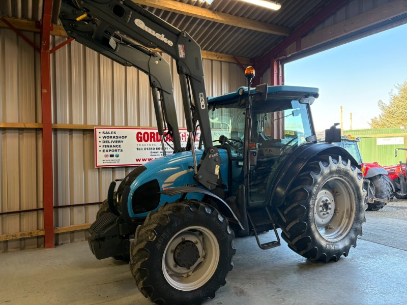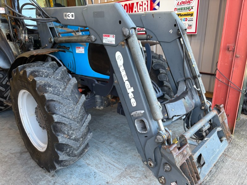 Landini Power Farm 95 4WD Tractor, 2006, Reg: CU56 AED, c/w Quicke Q30 Loader, joystick control, 3rd service, Perkins 91HP, 6723 recorded hours, speed four mechanical shuttle, max speed 40K, PUH, drawbar, 2 spools, trailer braking valve, top link, 1000/540 PTO, front fenders and front weights. Tyre sizes and percentages 340/85x24 20% and 420/85x34 80%. Worklamps & beacon. Straight from farm and in clean condition. All prices are plus VAT.
