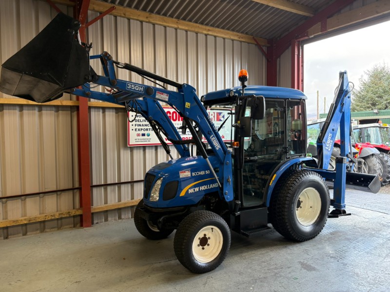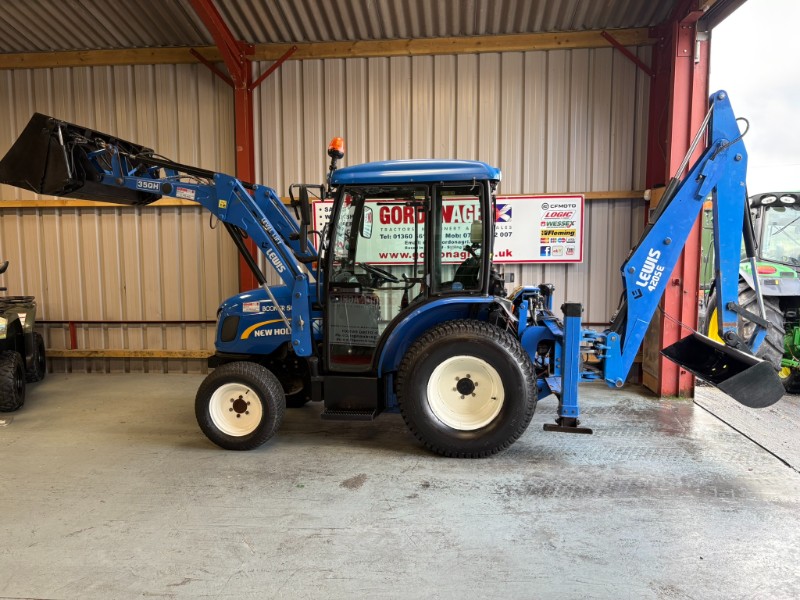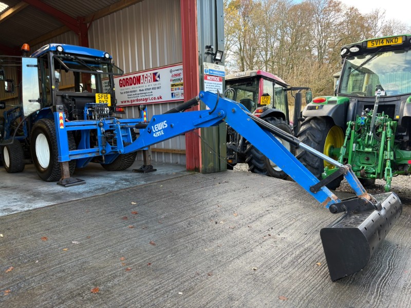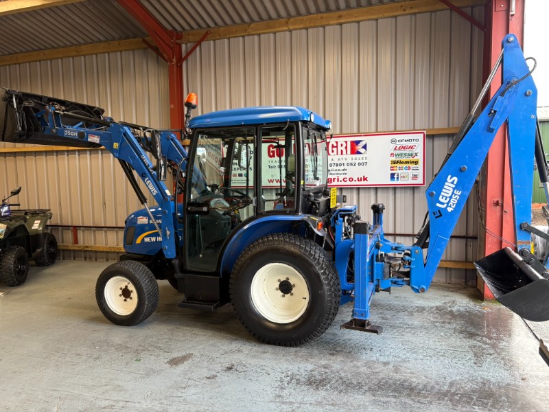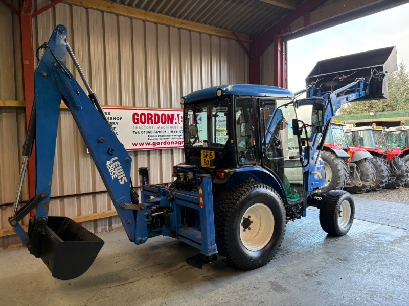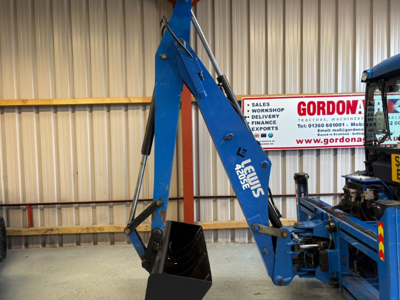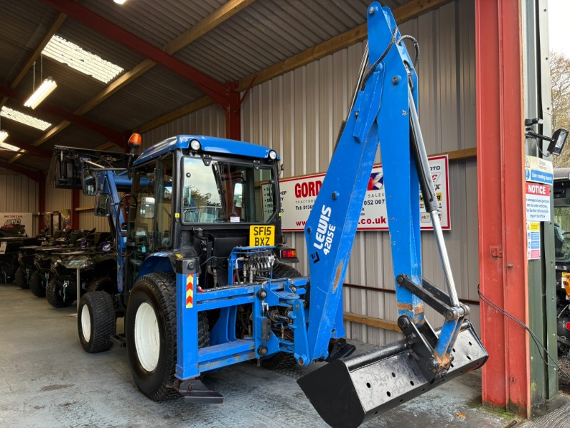 New Holland Boomer 50 4WD Tractor, 2015, Reg: SF15 BXZ, c/w Lewis 350H loader c/w 5 ft open/close bucket, joystick control, 3rd service. Also fitted with Lewis 4205E Back actor c/w 4ft bucket, operated from within the cab on swivel seat with a joystick control, side shift, slew ram and stabilising hydraulic legs. Powerful 47HP diesel, only 3510 recorded hours, hydrostatic transmission and power steering. Tyre sizes and percentages 280/55-15 60% and 41x14-20 80%. Full cab with heater, work lamps etc. Excellent set up ideal for small holder etc. Ex local authority tractor in clean condition. All prices are plus VAT.