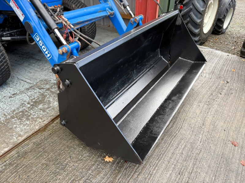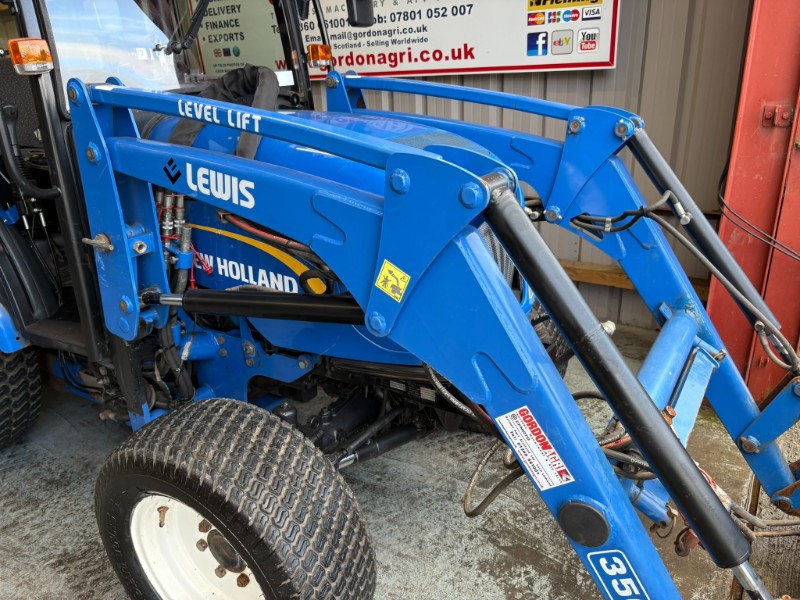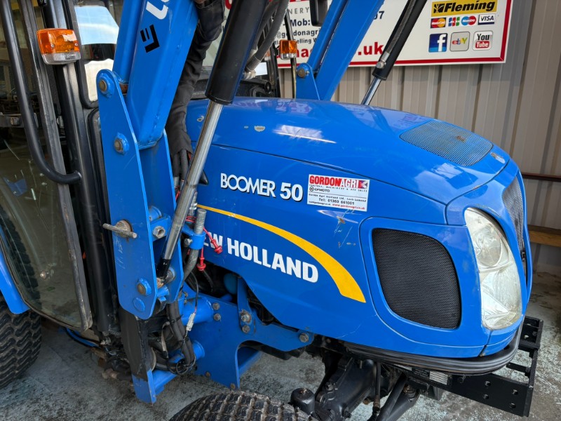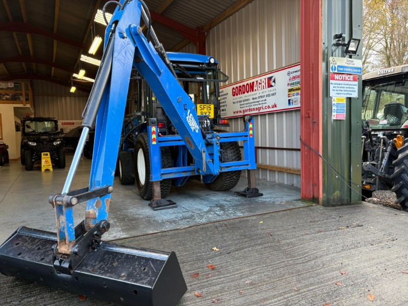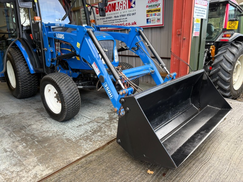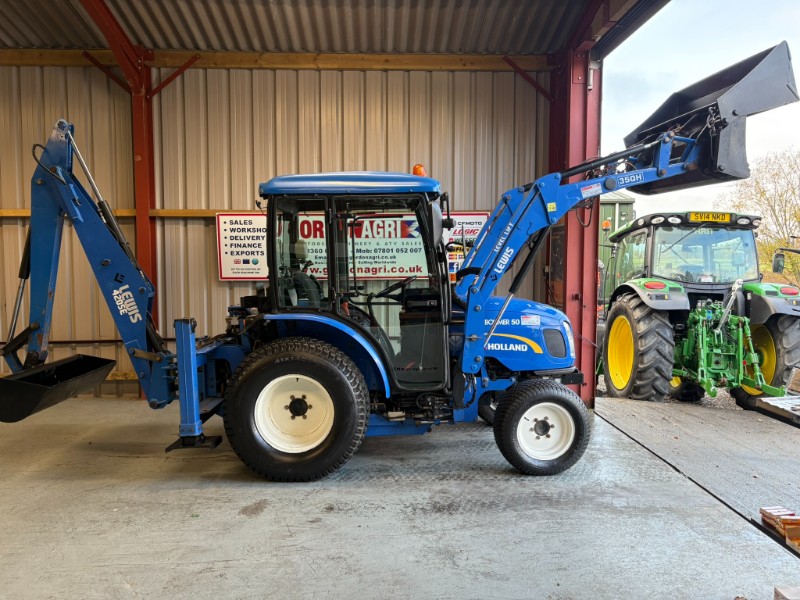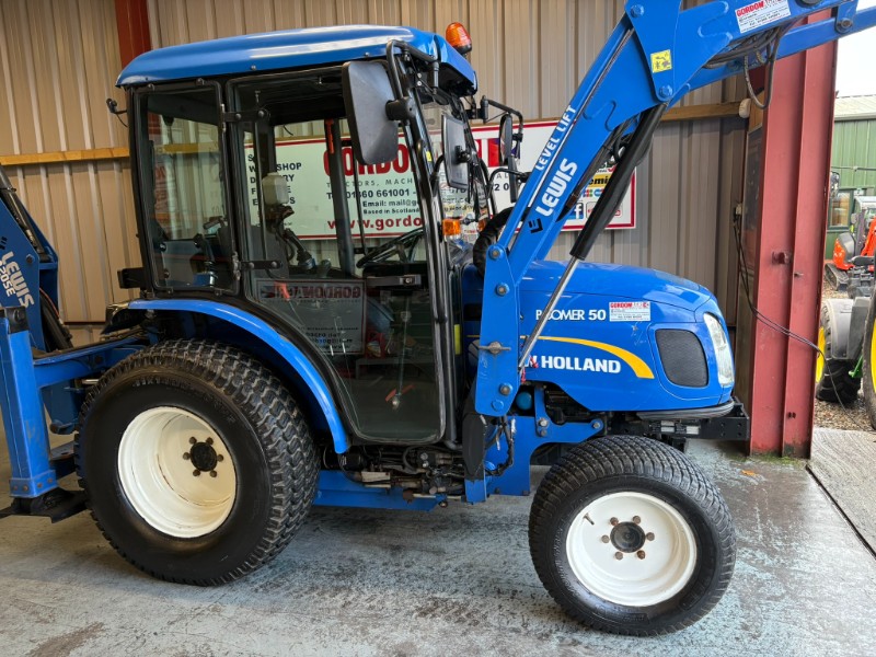 New Holland Boomer 50 4WD Tractor, 2015, Reg: SF15 BXZ, c/w Lewis 350H loader c/w 5 ft open/close bucket, joystick control, 3rd service. Also fitted with Lewis 4205E Back actor c/w 4ft bucket, operated from within the cab on swivel seat with a joystick control, side shift, slew ram and stabilising hydraulic legs. Powerful 47HP diesel, only 3510 recorded hours, hydrostatic transmission and power steering. Tyre sizes and percentages 280/55-15 60% and 41x14-20 80%. Full cab with heater, work lamps etc. Excellent set up ideal for small holder etc. Ex local authority tractor in clean condition. All prices are plus VAT.