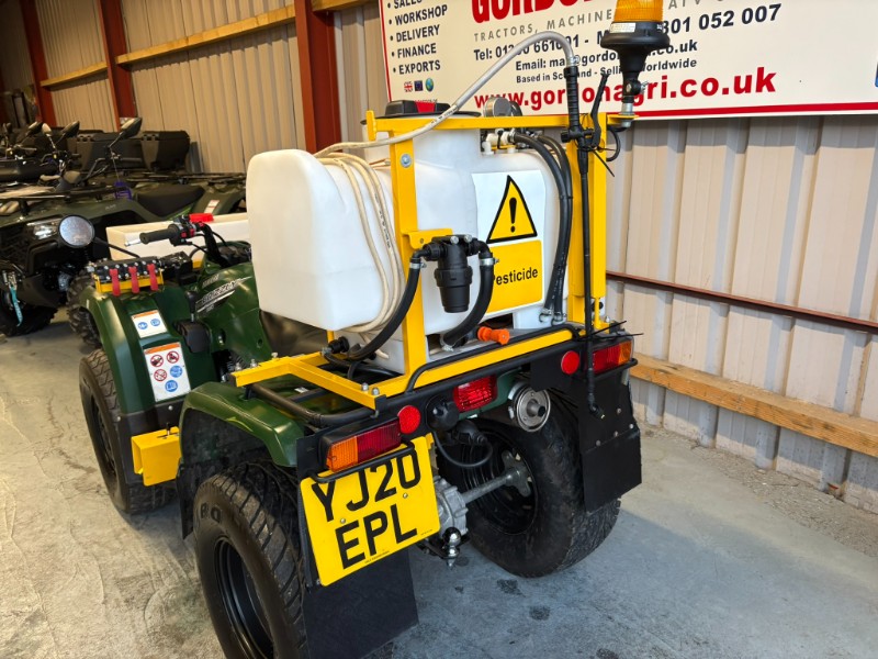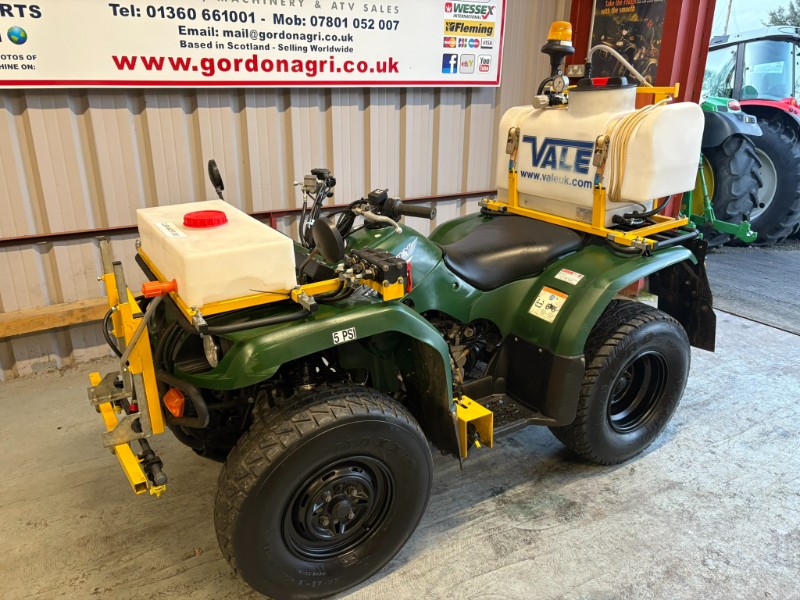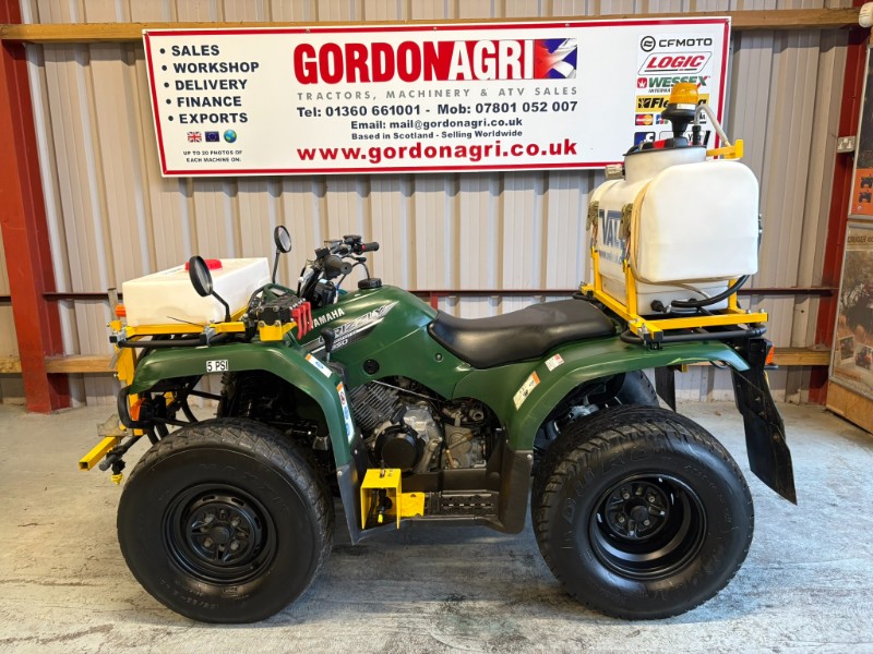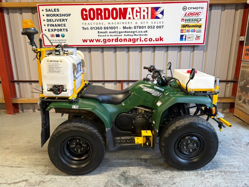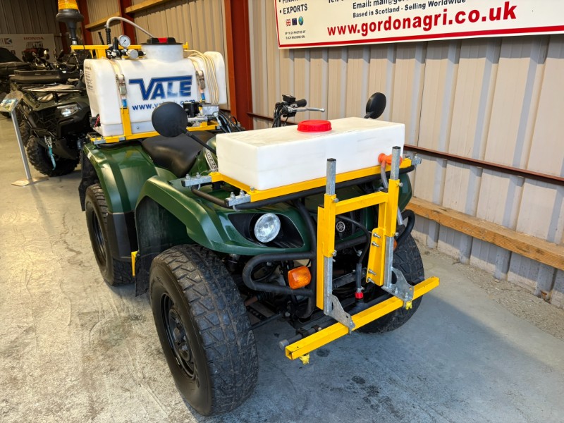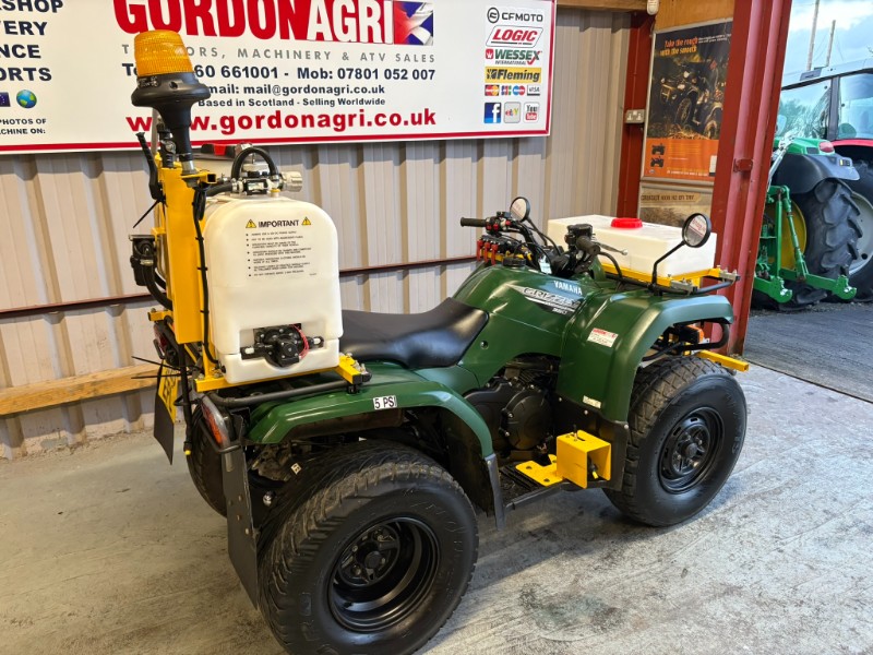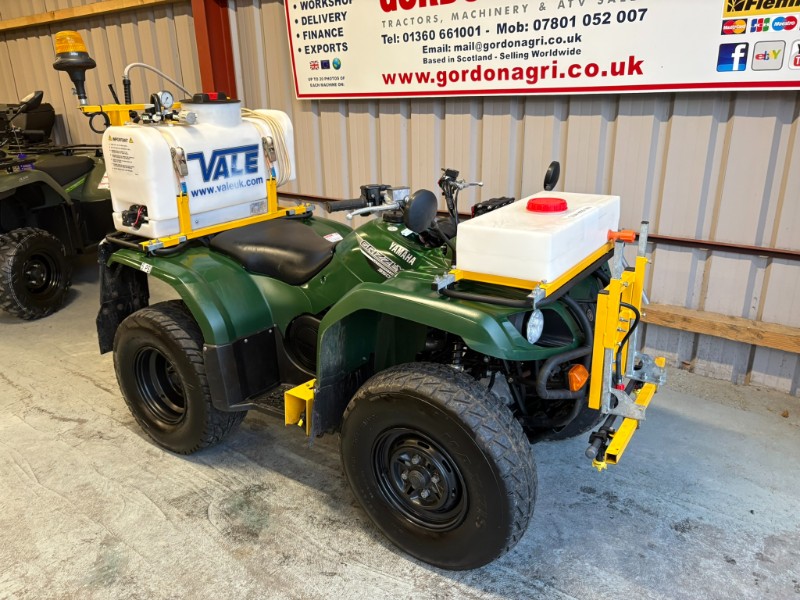 Yamaha Grizzly 350cc, 2020, c/w Vale Spray tanks and booms. Spec includes 4 stroke air cooled engine, automatic /Ultramatic transmission with F/N/R, selectable 4WD/2WD, front hydraulic brakes, rear sealed drum brakes, independent double wishbone front suspension and rear swinging arm, front & rear racks, and tow ball.