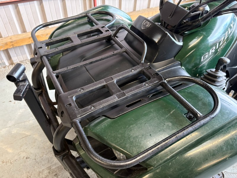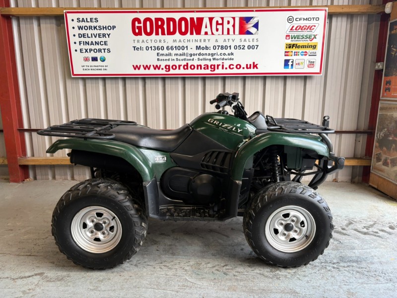 Yamaha Grizzly 660cc, 2005 approx, Spec includes independent rear suspension, automatic with H/L/R, selectable 4WD/2WD/diff lock, front disc brakes, enclosed foot wells, 962 recorded hours, digital display, front and rear racks, tow ball, rear tyres 60% and fronts worn. Fitted with front mount system. Ex large country house, used for grass cutting. Some age related scuffs on plastics. It is an older ATV and has age related wear and tear however it has just been serviced to include, new oil, new oil filter, cleaned air filter and new sparkplug. UK Delivery £95-subject to unloading facilities i.e. forklift or additional charges apply. All prices are plus VAT.