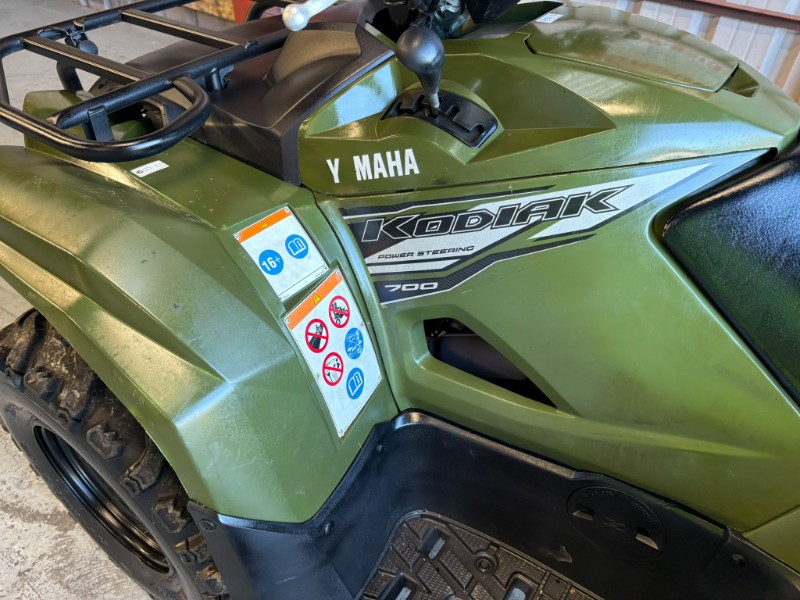 Yamaha Kodiak 700cc, 2021, Spec includes : Power steering, independent rear suspension, automatic with H/L/R, selectable 4WD/2WD/diff lock, front disc brakes, enclosed foot wells, centre headlight, digital display with only 844 hours and 7798 miles, front and rear racks, tow ball, heated grips, mudrunner tyres at 90% all round and front mounted Winch. Some age related scuffs on plastics. Just serviced to include, new oil, new oil filter, cleaned air filter and new sparkplug. Brakes serviced and adjusted. UK Delivery £95-subject to unloading facilities i.e. forklift or additional charges apply. All prices are plus VAT.
